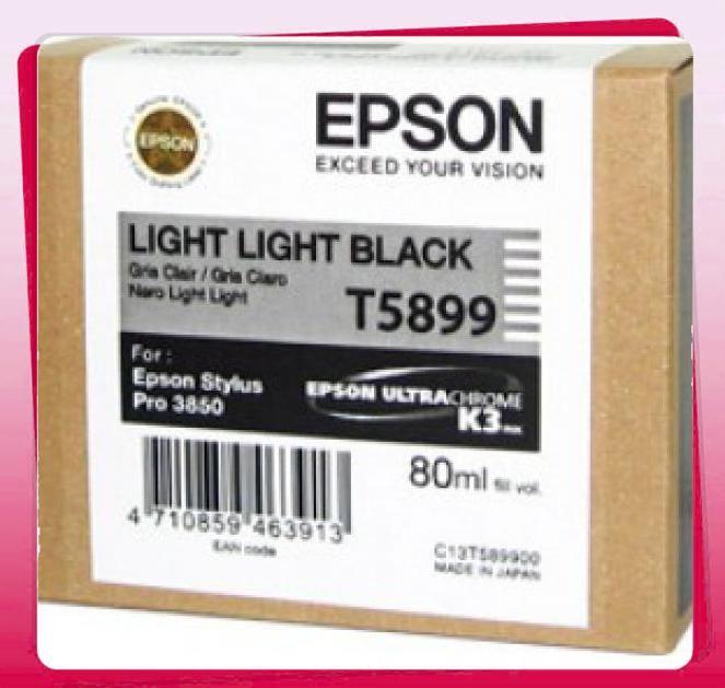 Mã mực: EPSON T589900 LIGHT LIGHT BLACK INK CARTRIDGE (C13T589900) Loại mực: In phun màu đen nhạt Dung lượng: 80 ml Bảo hành: Chính hãng Giao hàng: Miễn phí EPSON STYLUS PRO 3850