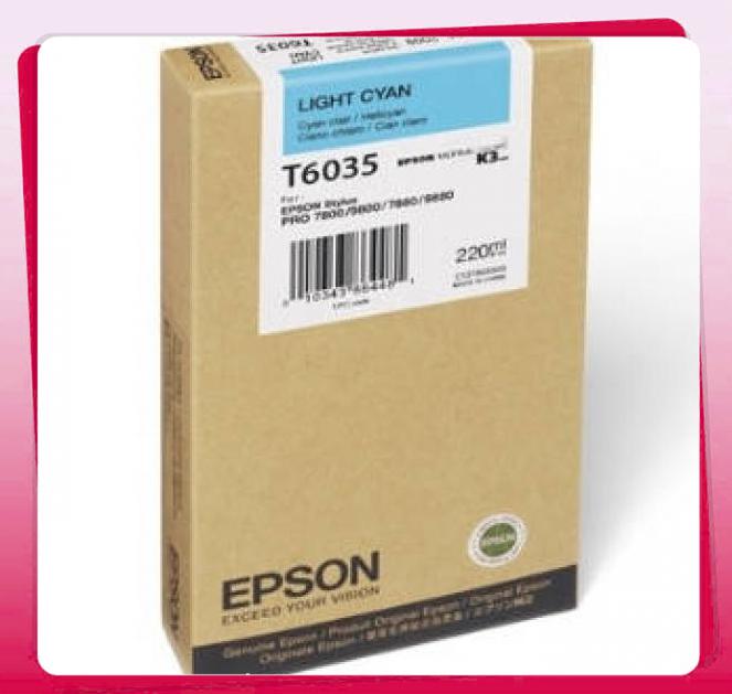Mã mực: Epson T6035 Hộp mực Xanh nhạt (220ml) (C13T603500) Loại mực: In phun khổ lớn màu xanh nhạt Dung lượng: 220 ml Bảo hành: Chính hãng Giao hàng: Miễn phí TPHCM (T563500) Light Cyan Ink- SPro7800/9800/7880/9880 (220ml)