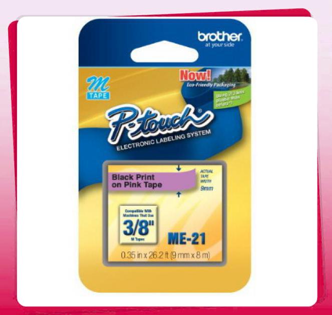 - Mã nhãn: Brother ME21 Black On Pink P-touch M Tape